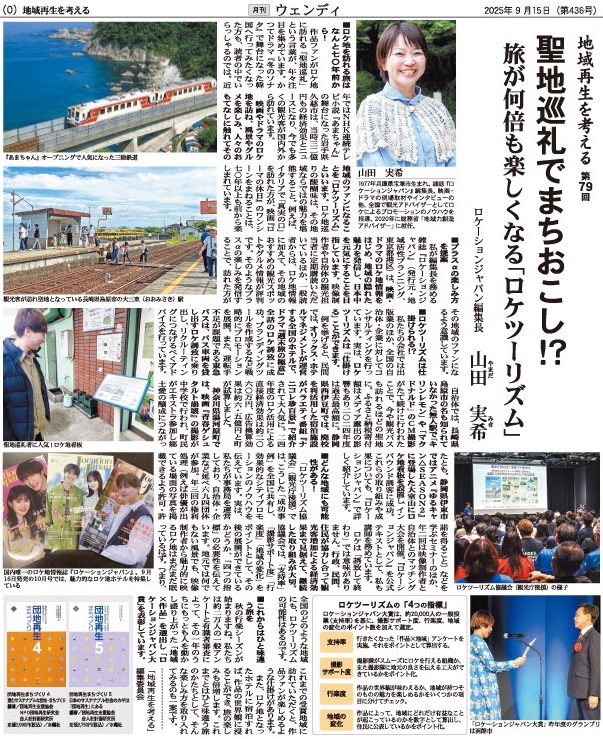 月刊ウエンディに弊社山田編集長の記事が掲載されました 2025 09 16 ニュース 2025年9月15日(月)発行の月刊ウエンディで、”地域再生を考える”のコーナーにて、弊社山田編集長の記事『聖地巡礼でまちおこし』が掲載されました。